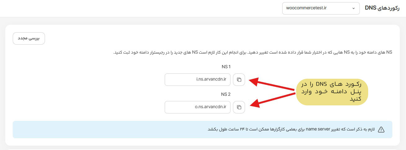 در پایان رکوردهای DNSها را پنل دامنه خود وارد کنید.