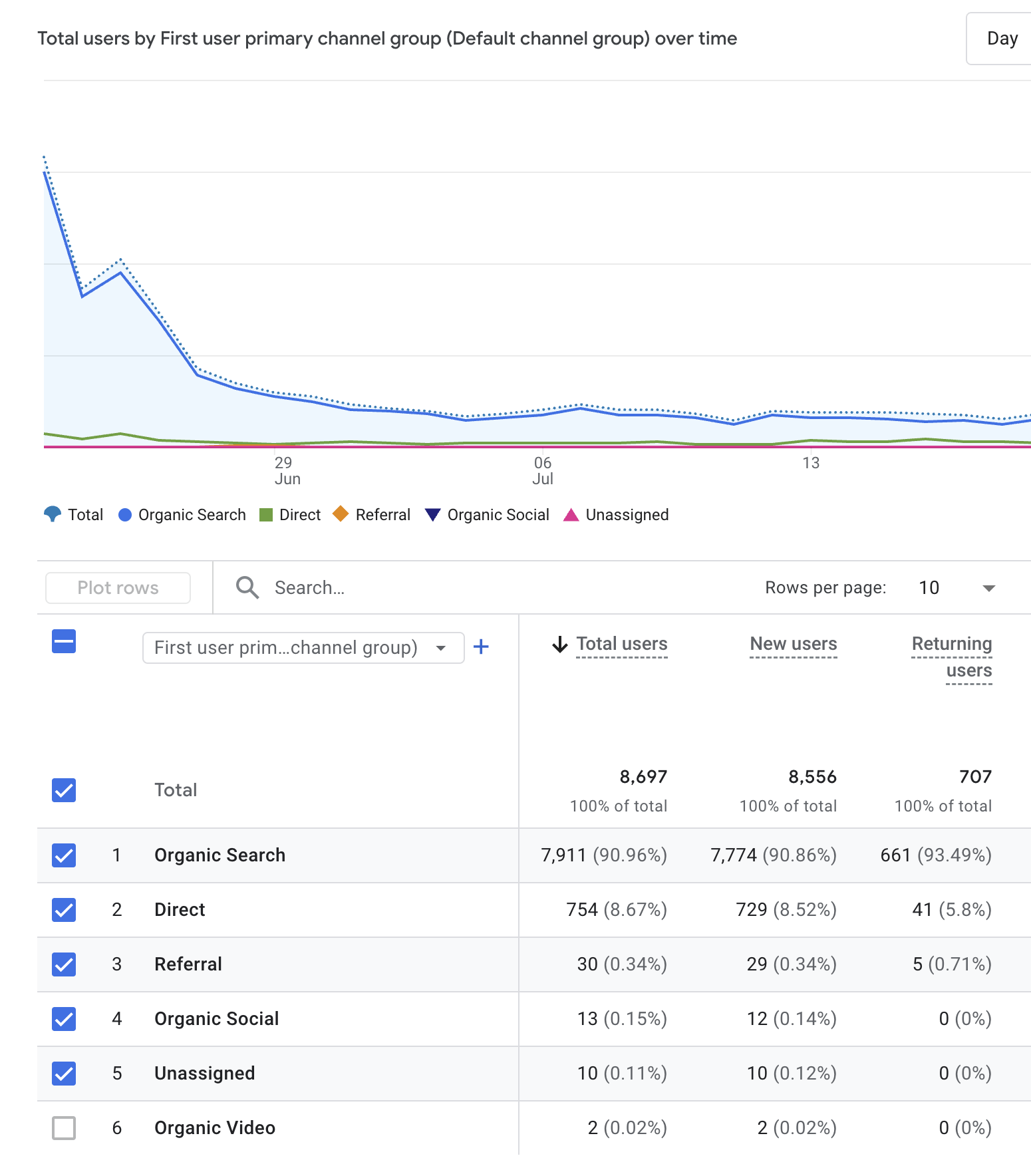 One of the most useful GA4 reports for SEOs is the Acquisition report. This shows you how many users arrived via organic search and how that traffic compares to other sources, like paid search or direct visits. By analyzing these patterns, you can see which pages are pulling in traffic and which might need attention.