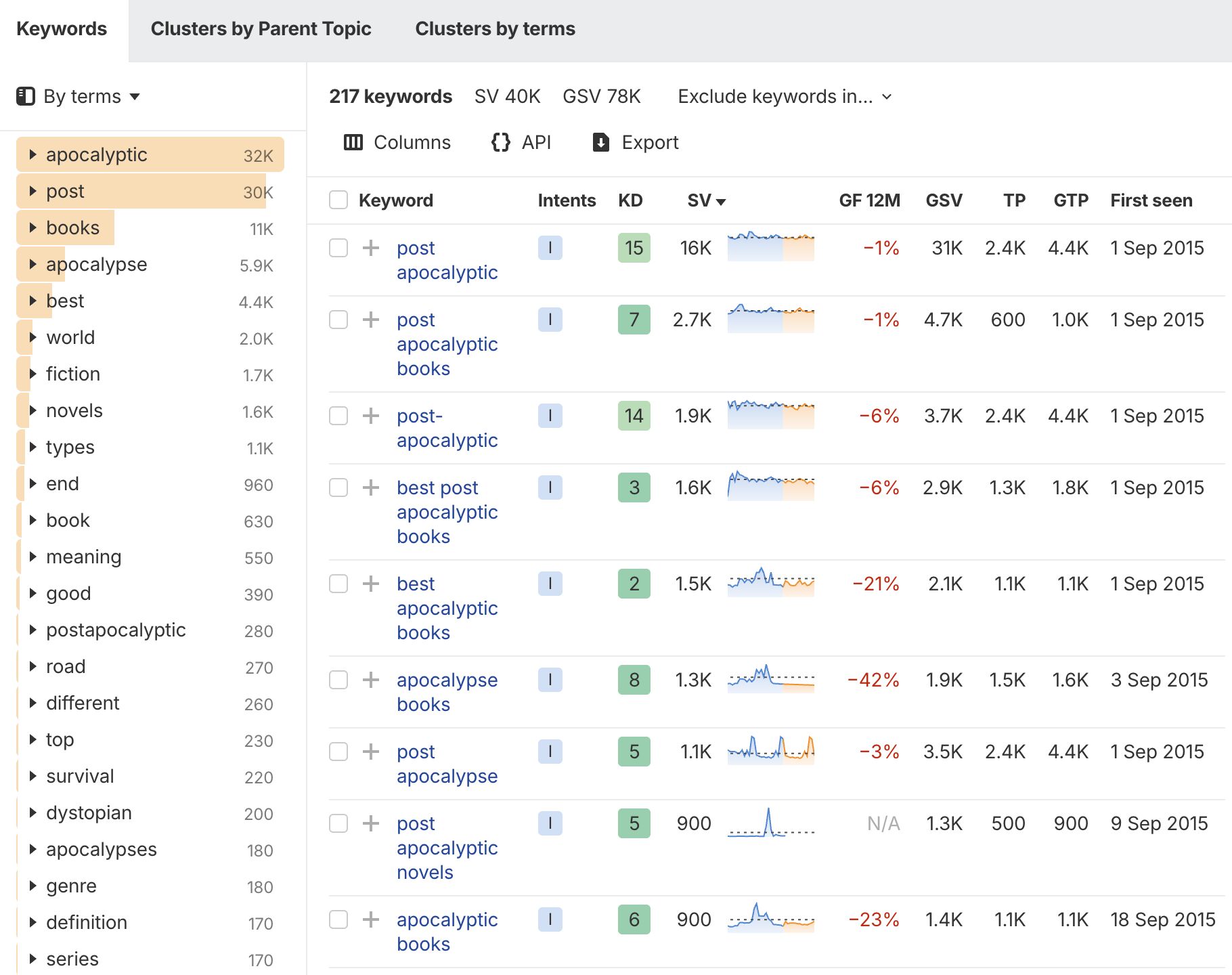 Ahrefs’ Keywords Explorer now includes growth predictions and built-in trend filters, which makes this kind of analysis even more useful. You can easily spot keywords that are trending up, down, or have strong seasonal patterns—all within the same dashboard.